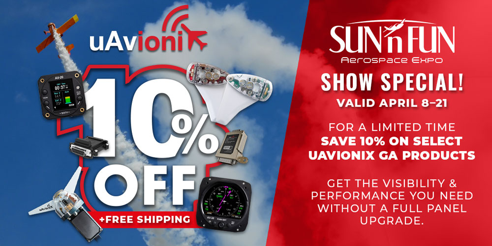 Save 10% instantly on select GA products from uAvionix purchased between April 8 - April 21, 2026!